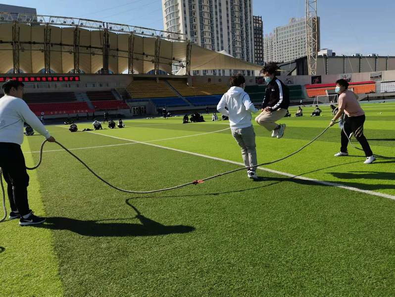 此次素质拓展活动设置了拔河、跳大绳、双人足球、趣味接力、过河拆桥、角斗士、袋鼠跳、团队一字马等8个比赛项目。赛场上,既有团队合作,又有参赛队员的奋力争先,班级的同学们热情观战,活动气氛热烈有序。别克老师为参与比赛的同学们颁发了奖品和生活用品。