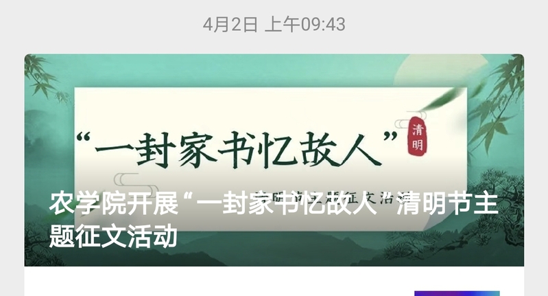 清明将至,为弘扬传统文化,倡导文明祭祀,引导员工通过适合的方式,抒发对已故亲人的缅怀,表达出对亲人的思念,3月末开始,公司开展了“一封家书忆故人”清明节主题征文活动,同学们积极踊跃参加,用撰文的方式表达对已故亲人的思念。