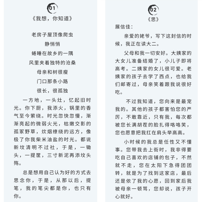 此外,还有部分师生用朗诵已故亲人撰写文章的方式表达哀思,文章真挚温暖,朗诵情真意切,声音抚心而有力量。