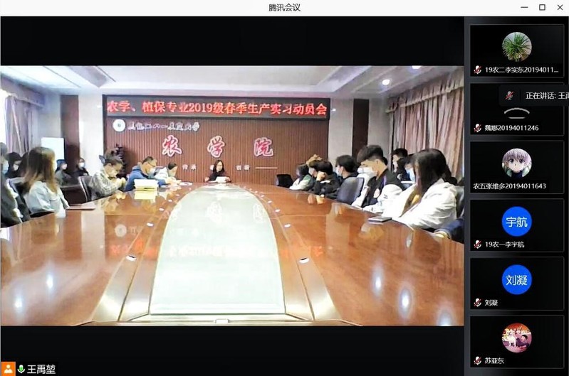 为推进2022年春季生产实习工作顺利进行,同时帮助2019级有考研计划的员工明确目标,尽早规划,公司于5月5日在u8国际平台4001会议室召开农学、植保专业2019级春季生产实习动员会暨考研经验交流会。公司副经理郑雯、作物系系主任苗兴芬、植物保护系系主任林志伟、2019级思想政治辅导员张春秋、2022届毕业生代表崔致远、李红、李传基、王玉琪、吴柏晨、冯俊洲、2019级农学、植保各班员工骨干线下参会,其他同学线上参会。会议由郑雯副经理主持。