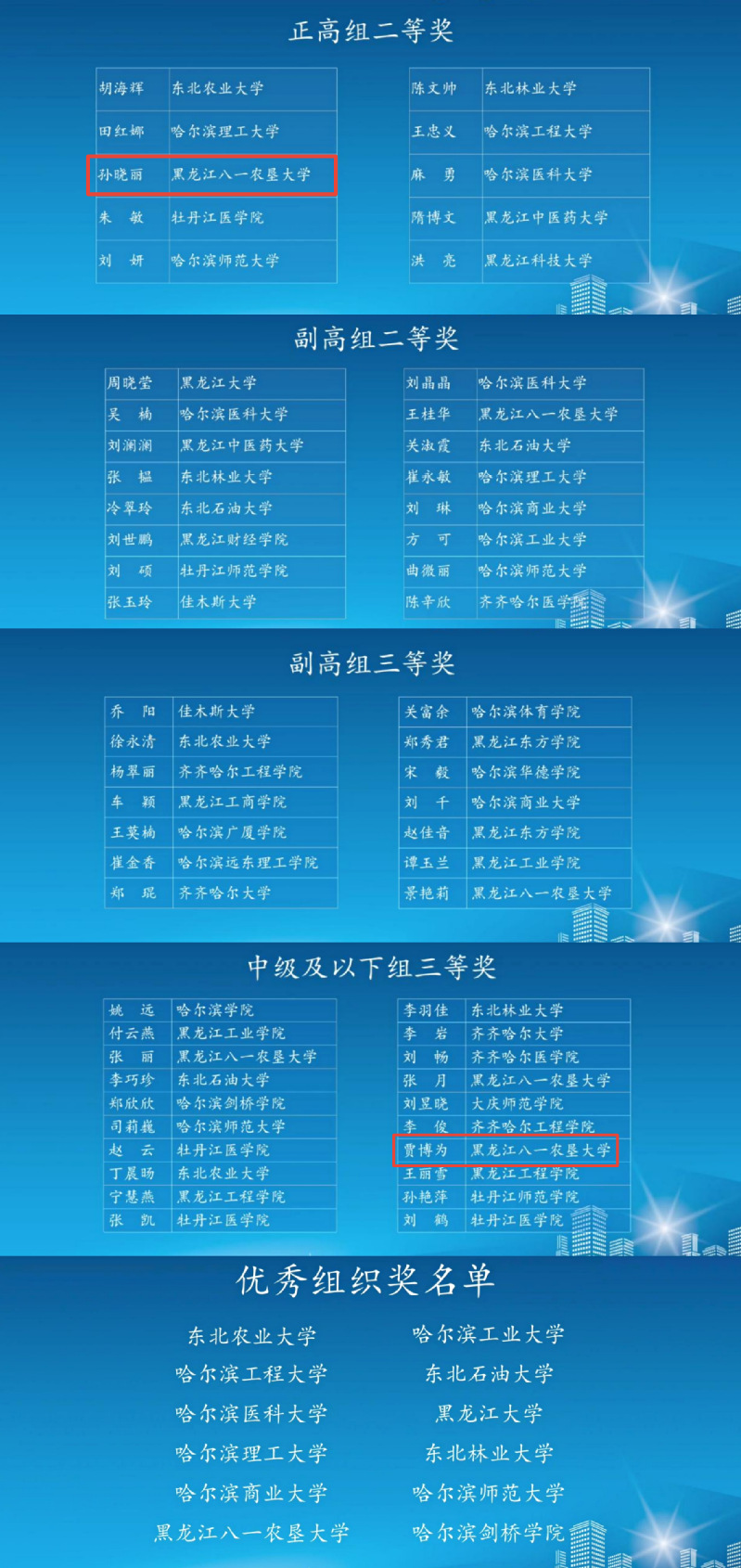 5月7日至8日,黑龙江省第二届高校教师教学创新大赛决赛暨国赛选拔赛以线上方式在东北农业大学举办。来自全省38所本科高校的205个参赛个人(团队)参加,70名教师(团队)入围决赛。公司推荐的6名教师(团队)喜获佳绩。其中,公司孙晓丽团别荣获正高组二等奖,贾博为团队荣获中级及以下组三等奖。公司荣获“优秀组织奖”。
