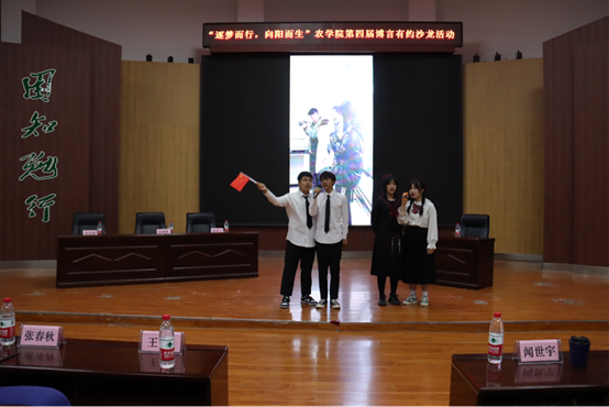 公司新媒体工作室21级徐炳杰、范引、张玥、李昀霏四位同学为大家带来歌曲《平凡之路》。活动现场掌声迭起,气氛融洽。活动最后,闻世宇、段丽莉、叶尔居别克三位老师为毕业生代表颁发了印有农大元素的纪念礼品,并送上美好的祝福。