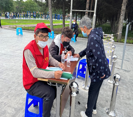 “哪里需要帮助,哪里就会出现红马甲的身影”。志愿服务期间,志愿团队成员充分发挥党员先锋模范带头作用,依据工作需求组建3支志愿服务小分队,分别对应疫情防控、登记入场、后勤保障等服务工作。当地许多老年人不会使用智能手机,无法扫码入场,志愿者们为其手动登记,对进入会场内无法辨别位置的老人,进行流调引导。