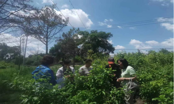 在丰乐镇果树苗圃,农户介绍了苗圃种植果树的种类、种植面积等基本情况,技术服务小组成员与农户交流果树生长季的主要病虫害,并将u8国际网站双创项目”黄金多糖蛋白酸-复合天然秸醋液“产品免费发放给农户,以中草药等绿色助剂提升杀虫、防病功效。