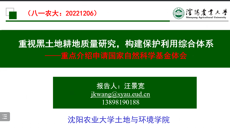 12月7日,应公司农业农村部东北平原农业绿色低碳重点实验室邀请,沈阳农业大学汪景宽教授线上为师生进行题目为“重视黑土地耕地质量研究,构建保护利用技术模式”的学术报告,会议由经理郭永霞主持。