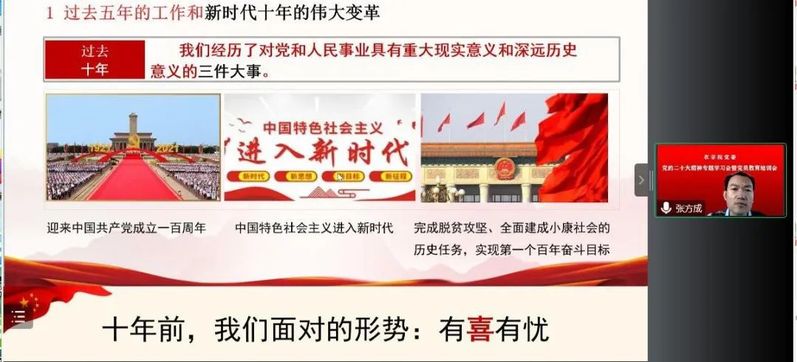 学习培训活动邀请到马克思主义公司教师张方成、高飞,分上下午两场分别以《新时代十年的伟大变革及其决定性因素——学习贯彻党的二十大精神》和《全面建设社会主义现代化国家的政治宣言和行动纲领——深入学习领会党的二十大精神》为题进行专题讲座。