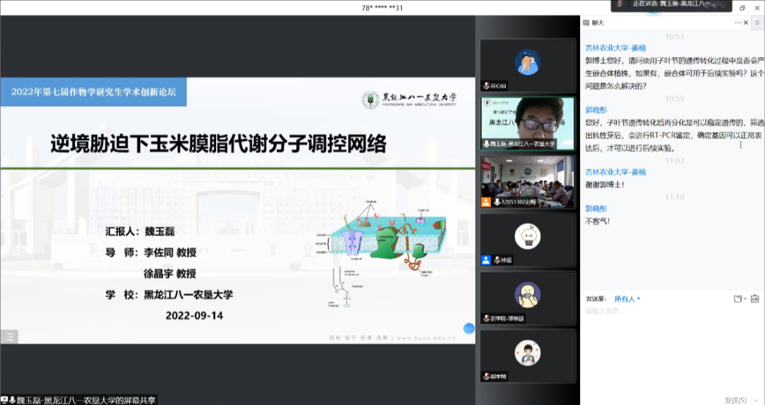 2022年9月12-15日,由沈阳农业大学承办的第七届辽宁省作物学研究生学术创新论坛大会成功举办。本次论坛的主题为“粮食安全与乡村振兴”,公司作物学师生全程观看线上直播。
