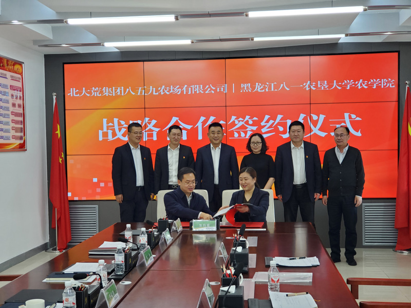 经理郭永霞与八五九农场有限公司党委书记、总经理尹显洪进行战略合作签约