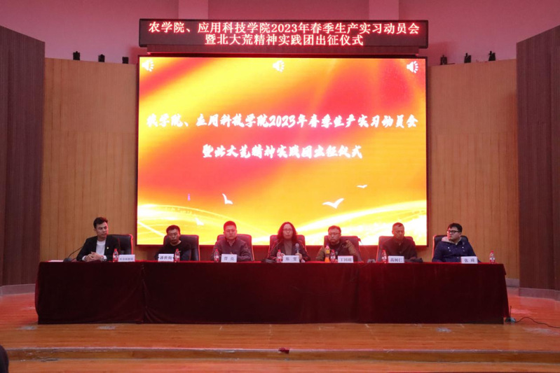 为深入学习贯彻党的二十大精神,提升员工实习实践能力,进一步弘扬和传承北大荒精神,培养适应我国农业现代化需要的新农科人才,农学、植保专业为期两个月的春季生产实习即将拉开帷幕。3月31日晚,公司联合应用科技公司在老员工活动中心举行了u8国际平台、应用科技公司2023年春季生产实习动员会暨北大荒精神实践团出征仪式。u8国际平台副经理郑雯、应用科技公司副经理丁国超、农场指导教师高树仁、曹亮、潘世驹和张琦出席此次大会,会议由u8国际平台辅导员、弘扬北大荒精神社会实践团指导教师叶尔居别克主持。即将前往农资类企业、五大连池市、垦丰种业、大庆科公司及19个农场开展实习实践的农学、植物保护专业的近300名员工参会。