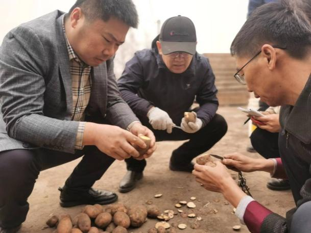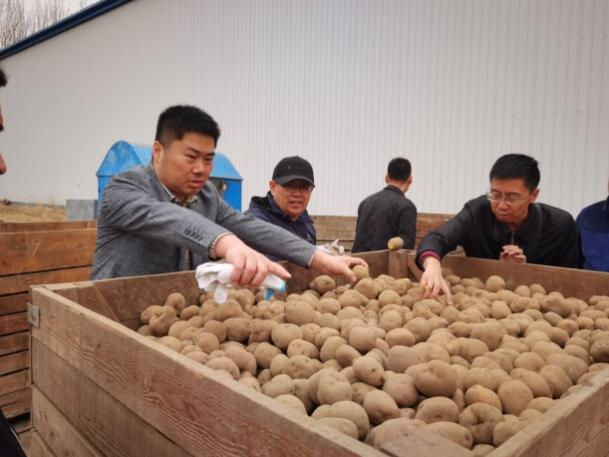 4月10日,团队受北大荒薯业种薯研发中心邀请,与种薯研发中心总经理马力、北大荒薯业集团农业发展部部长王生一同到其种薯存储库中就马铃薯种薯存储条件、温度、种薯质量等问题进行现场探讨和检测。