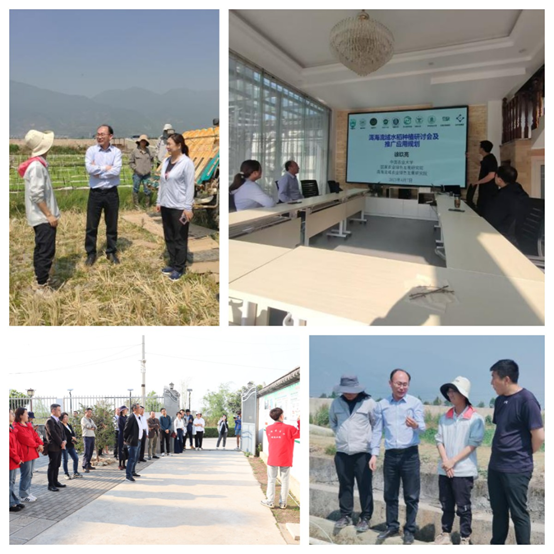 会议期间,郭永霞教授带队考察了中国农业大学大理古生村洱海流域水稻有机种植科技小院,了解了科技小院将科技创新、社会服务和人才培养融合“三位一体”的运行模式,并就水稻有机种植中存在问题进行了交流。考察组一行走进科技小院与云南农垦联合打造的洱海流域水稻有机种植基地,就水稻育秧中存在的问题进行指导,现场提供切实可行的解决方案。