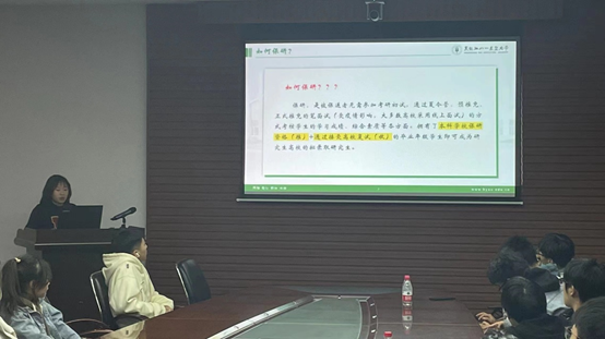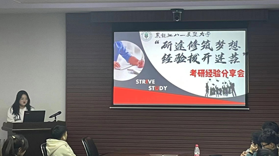 于洋从考研前期的准备,政治英语的复习,复试前的准备工作三个方面为同学们进行讲解。她提到,前期的准备工作需要确定好心仪院校,找好官网考研大纲,询问已经上岸的师兄师姐去寻找资料。她强调:“无论你选择什么院校,考上了才是研究生,一定选择自己最适合的公司”。同时,她也分享了考研英语和政治比较好的资料和专业的老师,提醒大家在考研的过程中也要保持良好的心态,积极的面对生活,多运动,多与人沟通。最后,于洋希望同学们能够找到一条最适合自己的道路,坚定不移的走下去,不负青春,不负自我。