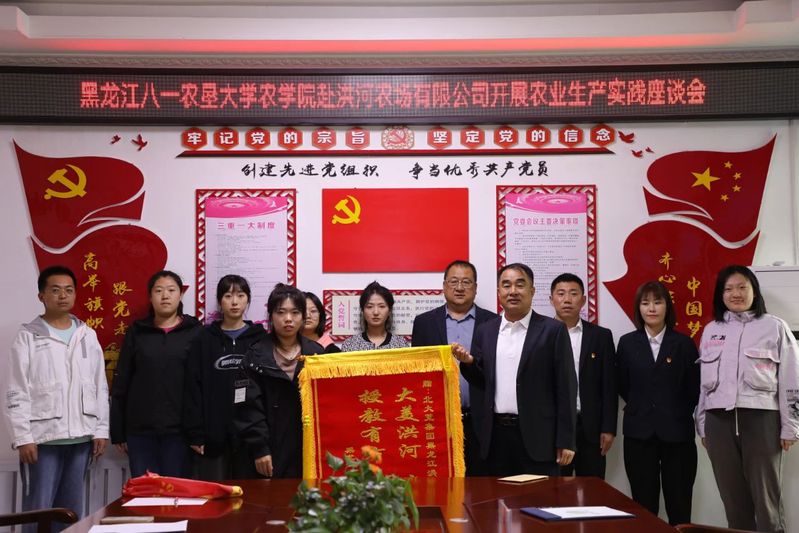 锦旗虽轻,情义却重。这是荣誉,是责任,更是赞许,代表了实习生对洪河农场有限公司党委的感激与信任,蕴藏着公司党委对八一农垦大学洪河实践团实习生的爱与关怀,这将成为公司进一步做好校企合作的动力。