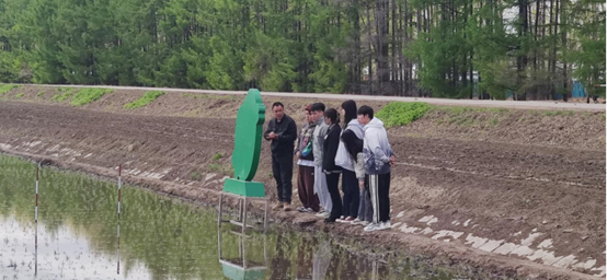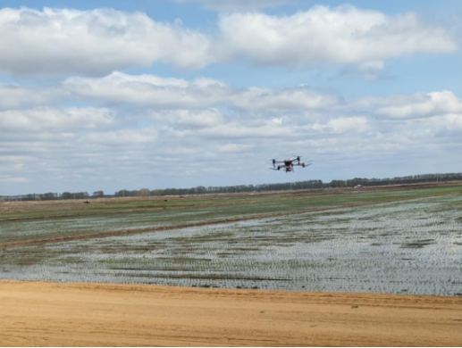 第三站来到第六管理区20作业站,这里的水田也完成了插秧,无人机正在进行施氮,何部长再次为我们讲解水稻的宽窄行插秧的好处以及无人机作业利弊。
