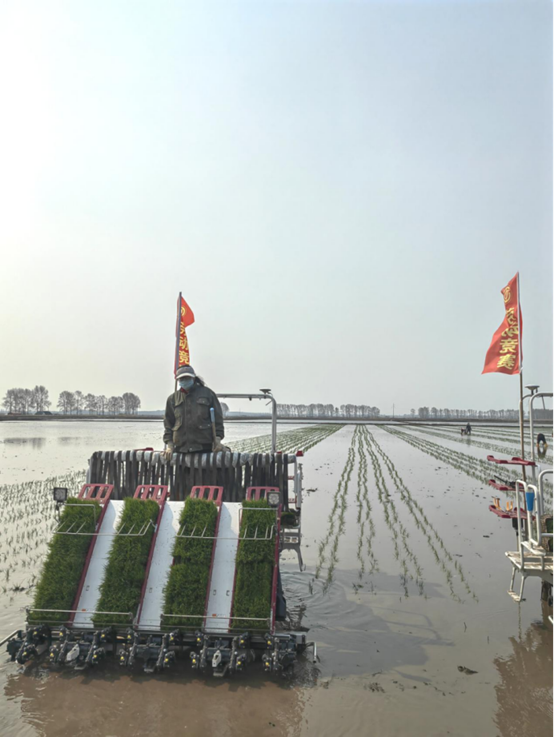 第二站我们来到了第五管理区,这里是最大的水田作业站,模范站,已经插秧完成。实行最新的洋马插秧机宽窄行插秧,这样会增加苗间的通风更有利于生长。