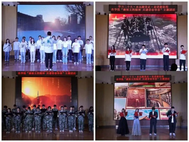 本次团活通过合唱《明天会更好》、《如愿》,朗诵《五四精神》、《青春中国》、《少年中国说》,话剧《跨越时空的对话》,歌唱励志歌曲和表演舞蹈等精彩纷呈的节目,同时还有关于五四精神的知识问答等环节。
