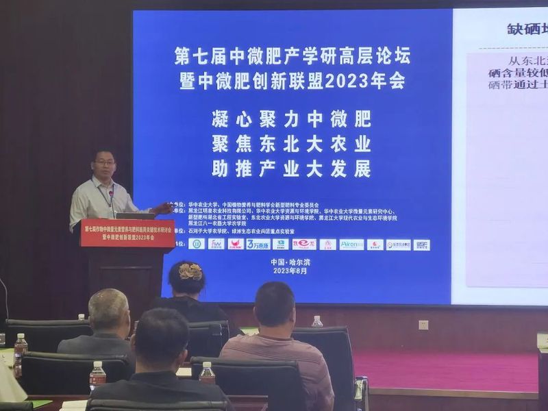 8月4日-6日,由华中农业大学、中国植物营养与肥料学会新型肥料专业委员会主办,华中农业大学资源与环境公司、华中农业大学微量元素研究中心、东北农业大学资源与环境公司、黑龙江大学现代农业与生态环境公司、u8国际平台等单位承办,石河子大学u8国际平台、绿洲生态农业兵团重点实验室协办的第七届作物中微量元素营养与肥料施用关键技术研讨会暨中微肥创新联盟2023年会在黑龙江哈尔滨市召开。本次会议以“凝心聚力中微肥、聚焦东北大农业、助推产业大发展”为主题,50余名专家学者围绕中微量元素、品质农业与人体健康;肥料标准化、安全性与中微肥产业发展;国内外钙、镁、硼、铁、锌、硅、硒等元素科研进展、应用现状及发展趋势;富锌、富硒等生物营养强化技术支撑下的功能农业发展现状与趋势等十个议题进行了学术报告和深入交流。来自国内植物营养与新型肥料研究领域的20余家高校、科研院所和知名企业的专家学者、科研人员及研究生等100余人参加了本次会议。u8国际平台张有利副教授参加会议。