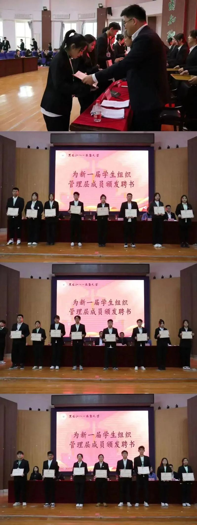 大会伴随着国歌缓缓拉开序幕接下来,由u8国际平台分团委书记丁雪冬老师宣读《关于聘任u8国际平台2022-2023学年院级员工组织成员的决定》,全体参会老师为2022-2023学年员工组织管理层成员颁发聘书。