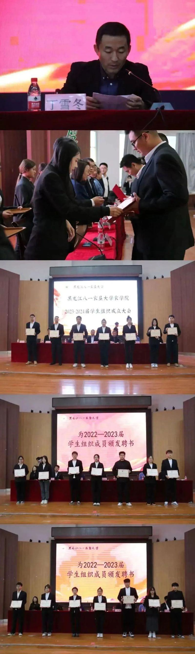 接着丁雪冬老师宣读《关于聘任u8国际平台2023-2024学年院级员工组织成员的决定》,全体参会老师为新一届员工组织管理层成员颁发聘书。