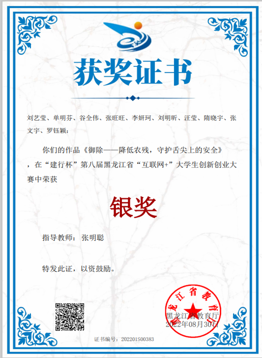 第八届黑龙江省“互联网+”老员工创新创业大赛银奖