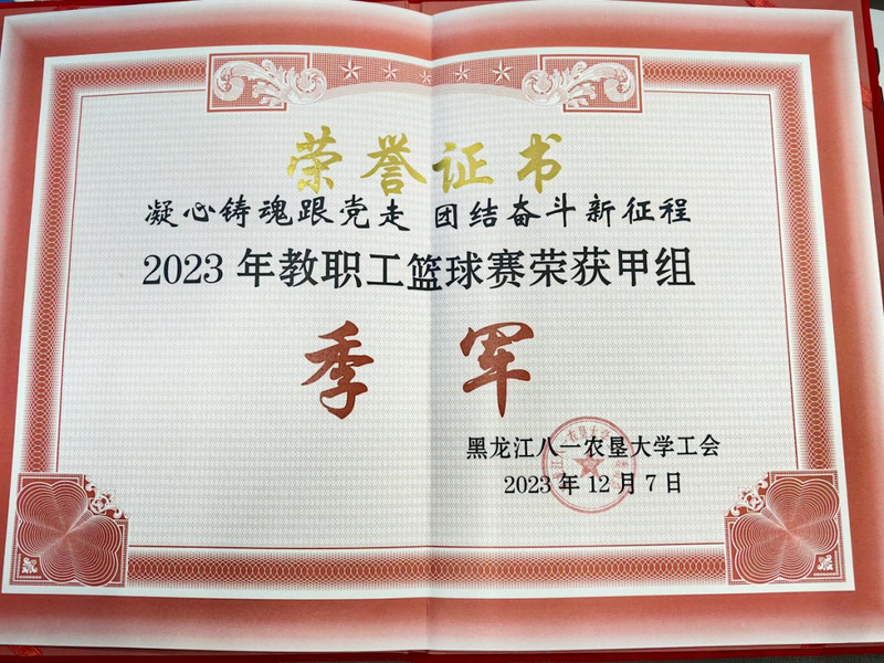 11月28日-12月8日,公司与应用科技公司联合组建“农学-应用联队”参加“凝心铸魂跟党走,团结奋斗新征程”2023年教职工篮球赛,并荣获甲组季军。