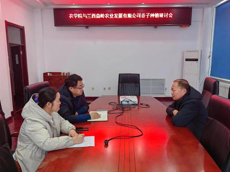 杜吉到教授提出了从谷子品种、栽培技术、投入品、病虫害田间管理等全面提出了解决方案,并将在2024年进行方案落实、跟踪和指导。苗兴芬曾在近三年为该公司提供了技术指导,就谷子种子处理,田间管理等方面进行了探讨。张有利就谷子种植的精准施肥和绿色防控问题进行了探讨,富硒酵母叶面肥和黄腐酸硒菌肥施用已在该公司进行了使用,起到了很好的效果。