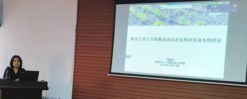 报告结束后,周园园博士与参会师生就大豆胞囊线虫对不同豆科作物的危害情况进行了交流,对利用芽孢杆菌防治植物病害等相关问题进行了讨论,对师生提出的问题进行了详细的解答。通过周园园博士的报告,参会师生对黑龙江省大豆胞囊线虫的发生情况及其生物防治等方面都有了更深入的了解。