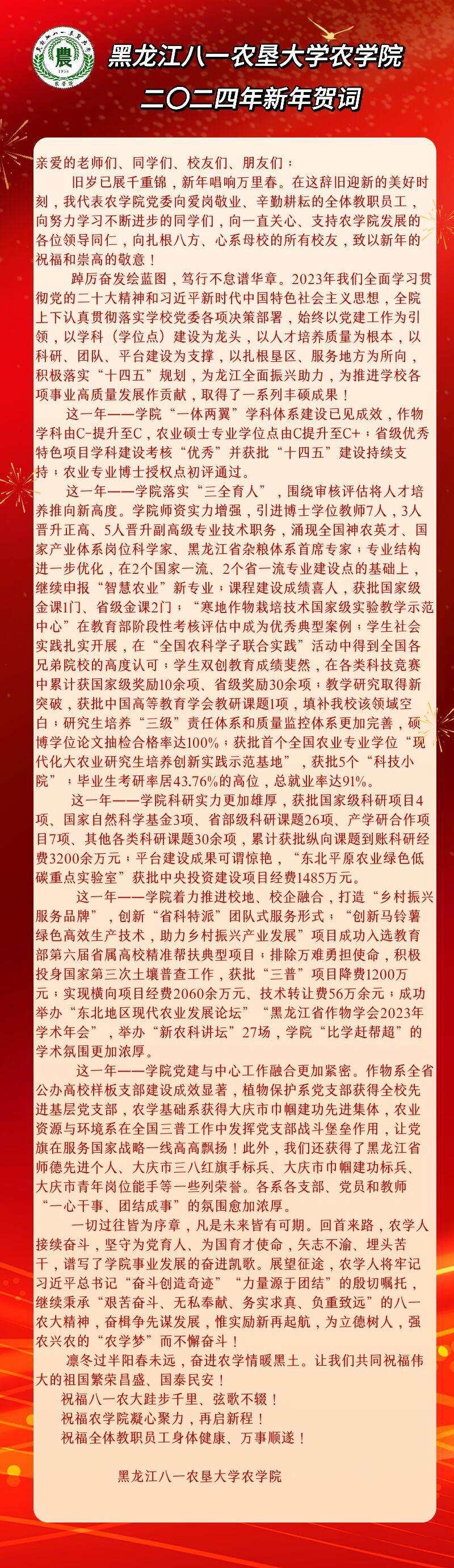 凛冬过半阳春未远,奋进农学情暖黑土。让我们共同祝福伟大的祖国繁荣昌盛、国泰民安!