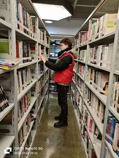 实践内容:志愿服务,负责整理图书馆书籍、报刊上架,馆内咨询等