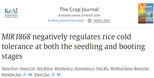 近日,公司孙晓丽/孙明哲教授团队在中科院一区TOP期刊The Crop Journal在线发表了题为“MIR1868 negatively regulates rice cold tolerance at both the seedling and booting stages”的研究论文,该研究鉴定到一个水稻物种特异的MIR1868负调控水稻苗期和孕穗期耐冷性,为耐冷水稻新品种培育提供参考。