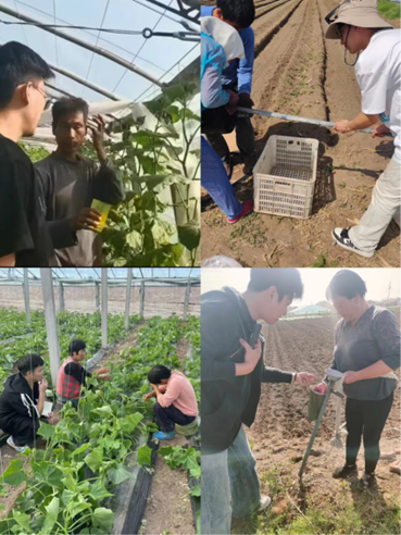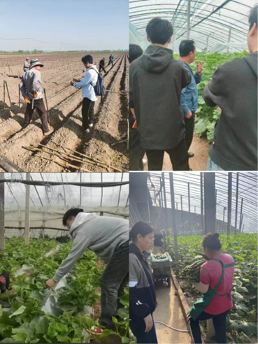 离开公司来到公司,我们的工作并不是一帆风顺的,在调研和产品推广过程中也遇到了很多问题,在不断的反思和改进中我们认识到了“礼仪”“赞美”“共情”“感恩”这四个方面的重要性。保持良好的礼仪,不仅能够树立一个好的形象,更能拉近我们与农户之间的距离,让我们的推广工作完成的更加顺利。同时发自内心的赞美也能对我们的工作提供很大的帮助。不过令我们感触最深的是共情和感恩。我们从公司来到公司,从只面对书本上的理论知识到真正参与到农业生产的过程中,我们感受到了农业生产的复杂性和艰巨性。面对各种作物在生长中遇到的困难,我们不仅需要有丰富的理论知识,更需要丰富的实践技能,比如我们在课本中学习到黄瓜生长的最适温度为26-28度,但在实际的生产过程中却往往高于最适温度。向农民朋友请教和学习的过程也是我们将理论和实践相结合的过程。同时我们也感受到了农业生产的艰辛和不易,当我们真正的走入高温大棚去帮助农民铺地膜、铺滴灌带、蘸花时我们更加感受到了农民的辛苦,但即使在艰苦的条件下,农民朋友也始终保持乐观向上的心态,给予我们很多善意和鼓励,这也让我们发自内心的共情和感恩,更让我们坚定了为祖国农业做出自己的贡献的决心。