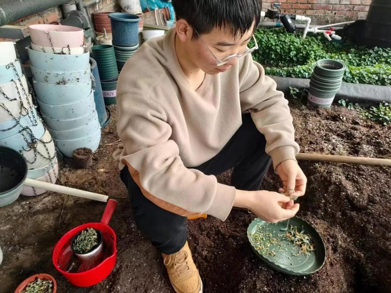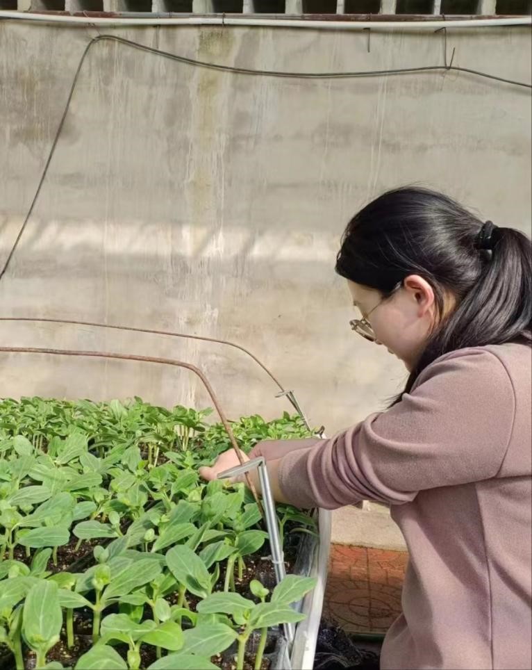 王领:在实习过程中,我深入参与了各种植株如:银叶菊、紫竹梅等植物的种植、施肥、管理各个环节,深刻体验到了实践的乐趣,切实掌握了农业理论知识的实际应用。在课堂上,我们学习了很多农业理论知识,但只有在实践中将这些理论知识应用到农作物种植中,才能真正理解其含义。通过实际操作,我了解了不同农作物对土壤、水分、肥料的需求,以及如何进行病虫害防治等。实习也让我认识到农业生产的艰辛和重要性。通过实习,我了解了农业科技的最新进展,对农学未来的发展充满信心。