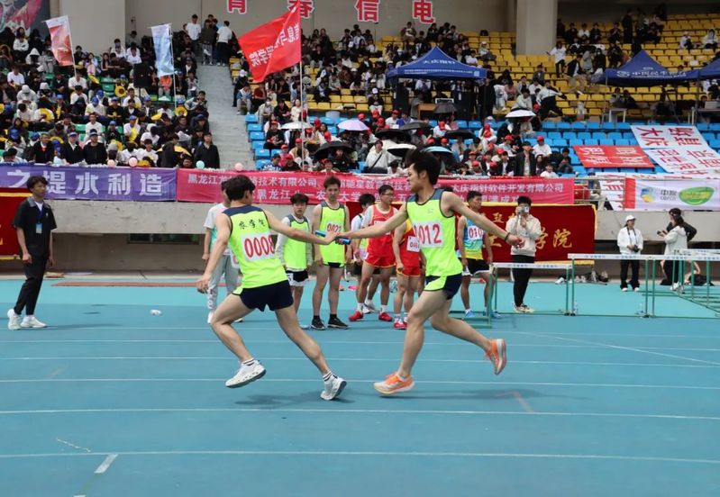 闫旭同学在校运会男子400米跨栏中取得第六名的佳绩