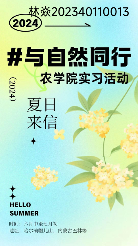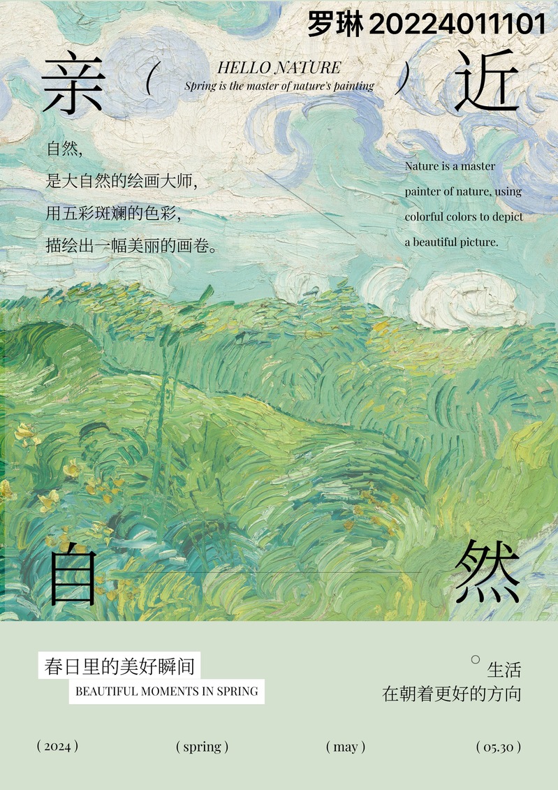 对于农学学子来说,大自然是最好的老师。为了更好的向员工宣传普及亲近自然的精神, 让员工不局限于从书本和课堂上了解自然, 而是能够切身投入进大自然中,将亲近自然落实到行动中,公司廿四风植物艺术社团举办“与自然同行”海报征集活动。