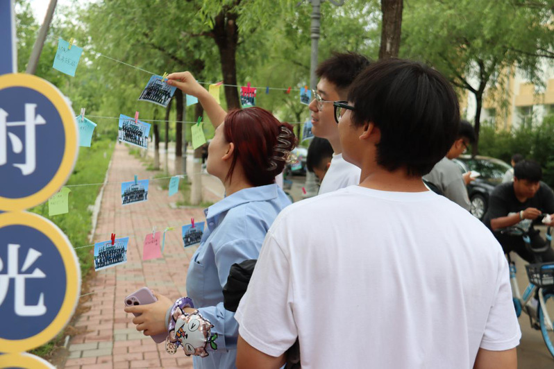 随着活动的推进,现场转至“分葉”环节,通过展示同学们日常生活、参与社团活动、科技创新、各类竞赛的照片墙,映射出老员工活的丰富多彩与个人能力的不断拓展,从课堂到社团,从图书馆到操场,那些共同度过的日夜再次鲜活起来。正如绿叶在阳光雨露的滋养下逐渐繁茂,这一时期,员工们也在学习与探索中不断“分葉”,各自绽放。