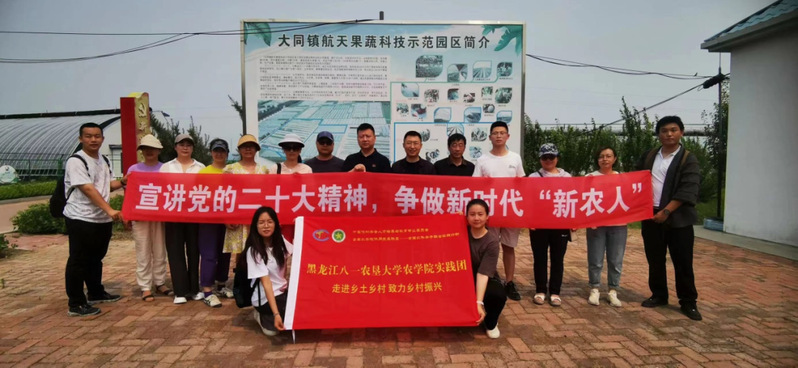 为深入学习宣传贯彻习近平新时代中国特色社会主义思想和党的二十大精神,学习运用“千村示范、万村整治”工程经验,深刻领会习近平总书记给中国农业大学科技小院同学们的重要回信精神,引领广大农科学子“厚植爱农情怀,练就兴农本领”。2024年7月10日,u8国际平台绿色梦想实践小队在李建伟老师的带领下赴大庆市大同镇八井子乡庆阳山村的航天果蔬科技示范园区,参观、调研示范园区高质量发展的运营模式,如何进行资源整合和带动一方经济,为乡村振兴发展提供新质生产力。