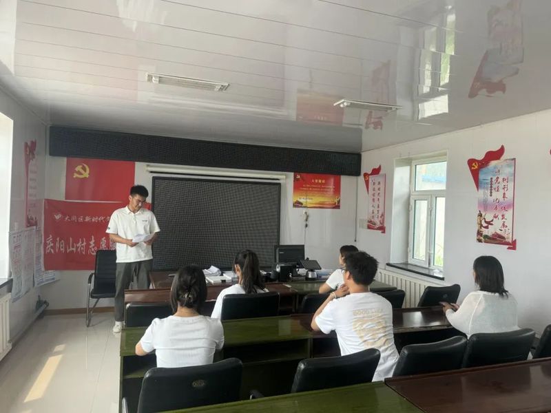 在庆阳山村党群服务中心,村支书介绍了庆阳山村近年来的发展变化,从昔日的贫困落后到如今的小康生活,每一步都凝聚着村民们的辛勤汗水和不懈努力。并介绍了村子的基本情况,全村共有5个自然屯,近500户2000余人口,林田耕地千余亩,并深入讲述了庆阳山村如何入选了全国乡村治理示范村,以及为此做的努力。