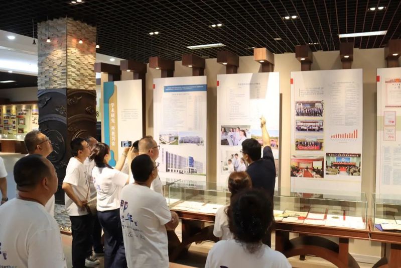 座谈会后,员工们一同参观了校史馆,一张张泛黄的老照片、一段段珍贵的视频,将大家的思绪瞬间拉回二十年前那个充满朝气的夏天,员工们或驻足凝视,或轻声交谈,眼中闪烁着对过往岁月的无限感慨与怀念,对比母校的旧貌新颜,切实感受母校巨大的变化,为母校的蓬勃发展感到由衷的欣慰和自豪。