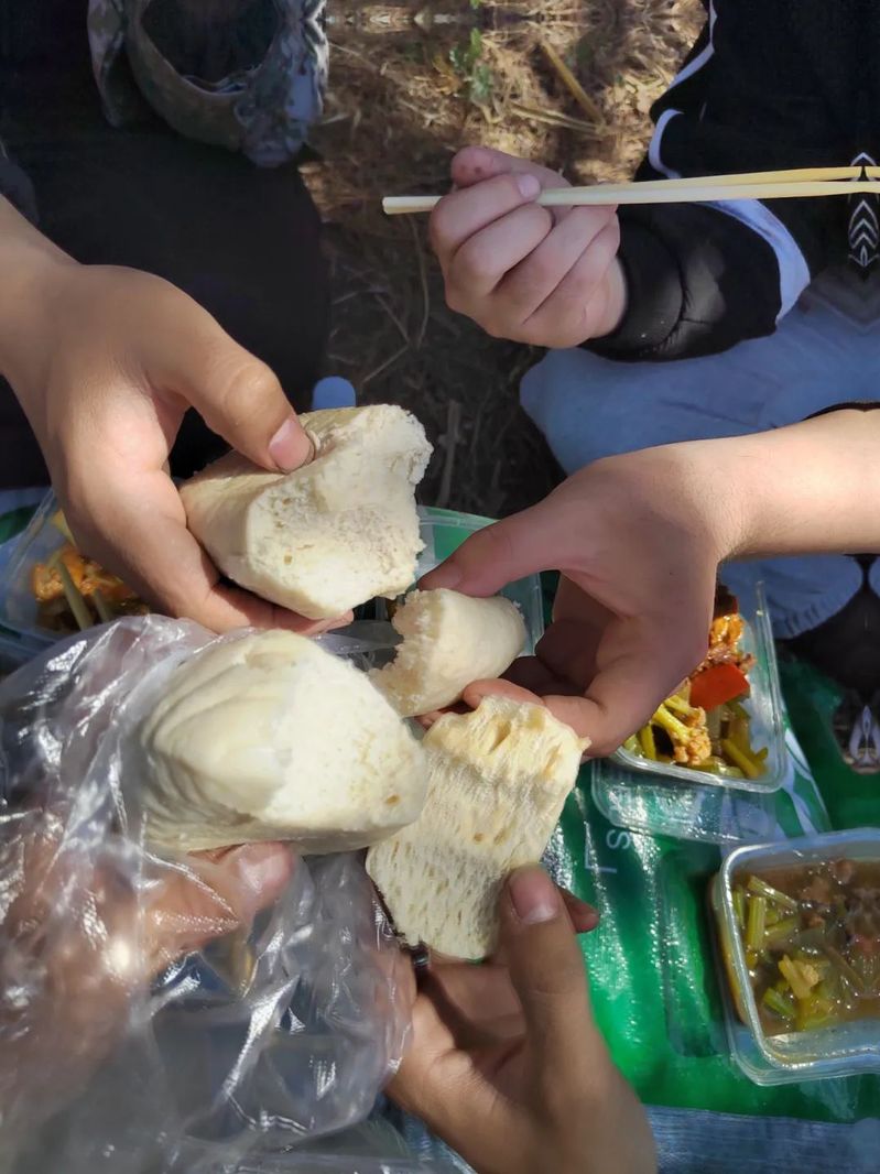 为加快试验进度,中午在实验地里吃饭