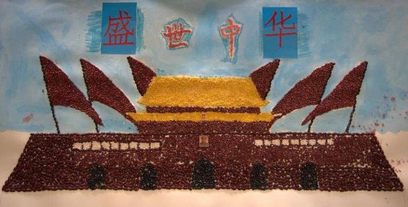 创作理念:在这幅以天安门为构成元素的种艺画中,我们旨在体现“盛世中华”的宏伟景象,捕捉并表达国庆节这一重要节日的喜悦与自豪。天安门作为我们祖国的心脏,不仅是政治和历史的象征,更是国家繁荣与强盛的标志。国庆节,作为庆祝国家诞生的日子,是全国各族人民共同的节日。在这一天,天安门广场上空飘扬的五星红旗,与人们的笑脸相映成趣,彰显着国家的团结与和谐。种艺画以 这一背景为依托,通过精心设计和布局,将节日的喜庆氛围和国家的辉煌成就融为一体。画面中央,天安门巍然耸立,周围环绕着繁花似锦,象征着国家的繁荣昌盛和人民的 幸福生活。五星红旗在蓝天下飘扬,如同跳动的火焰,传递着激情与活力。画面中的每一 处细节,都经过精心雕琢,旨在传达出节日的喜悦和对祖国深深的热爱。天安门在这幅画中不仅是北京的地标,更是国家的象征。它见证了中国从站起来、富 起来到强起来的伟大飞跃,是我们民族自豪感和自信心的源泉。红旗的红色代表着革命和 进步,五颗星代表着中国共产党领导下的各族人民大团结。在这幅画中,我们试图捕捉国庆节期间天安门广场上的节日氛围。人们欢聚一堂,共 同庆祝国家的诞辰,脸上洋溢着幸福的笑容。这种氛围传递出一种积极向上、团结奋进的 精神状态,激励着每一位中华儿女为实现中华民族伟大复兴的中国梦而不懈努力。通过这幅种艺画,我们希望展现的不仅是天安门的壮丽景象,更是一个时代的精神面 貌一盛世中华。在国庆节这个特殊的日子里,我们以艺术的形式,向世界展示中国的繁荣 与发展,传递出对未来的美好憧憬和坚定信念。
