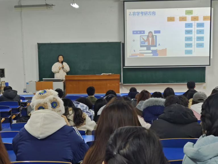 交流会上,多位考研成功的学长学姐现身说法,从农学考研备考、农学考研择校、农学考研报考、复试和调剂四个方面进行分享,讲解人通过PPT展示、案例分析、互动互答等多种形式,向同学们详细介绍考研的各个环节。讲解结束后,同学们积极分享自己的考研经验,同时就自己备考过程中遇到的困惑和问题进行深入交流,大家积极提问,踊跃解答,现场气氛热烈。