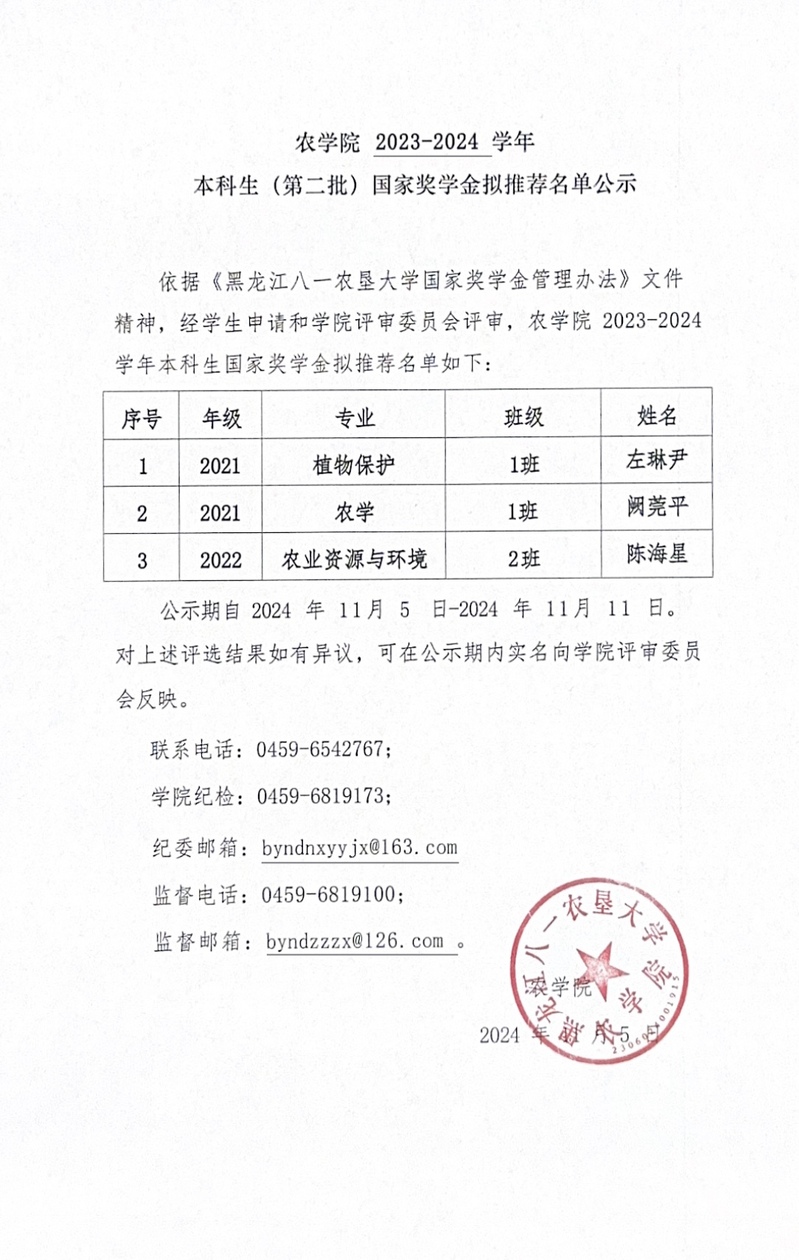 u8国际平台2023-2024学年本科生(第二批)国家奖学金拟推荐名单公示