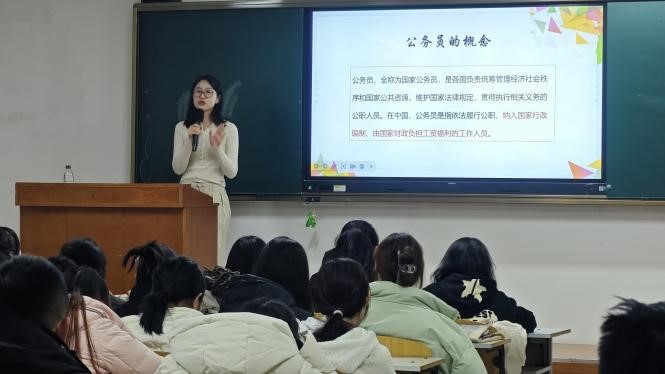 为帮助同学们了解公务员职业的特点和发展前景,提供最新的公务员考试信息和政策解读,及时了解考试动态,把握备考方向,为未来的职业生涯做好准备。公司于11月13日下午,在主楼西区611教室开展公务员备考公益讲座,本次活动邀请袁芳老师主讲,70余名考公意向同学参加。