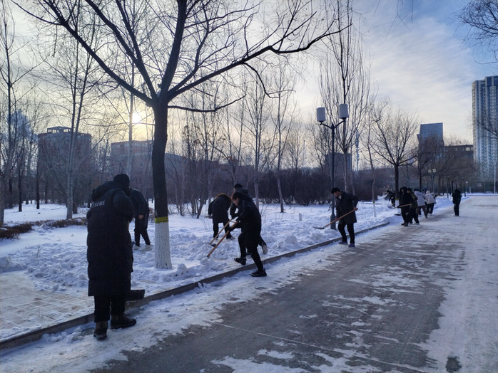 清扫过程中,有部分区域积雪严重,既不能破坏道路,又要保证积雪清除,给志愿者们增加了不小的难度。尽管如此,志愿者们依旧顶着严寒奋力清扫,在较短的时间内完成了清雪工作。