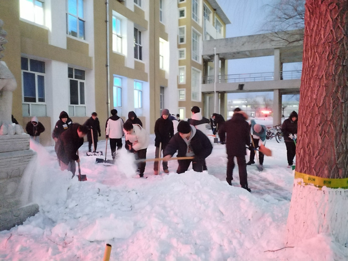 寒风刺骨,雪花纷飞,农学学子不畏严寒,毅然拿起工具,“以雪为令”开展清雪工作。本次工作以多点位方式开展,以u8国际平台正门与公司天井为主战场,环绕u8国际平台周边道路进行清雪。志愿者们拿起铁锹、扫帚等工具,分工明确井然有序的清扫道路积雪。