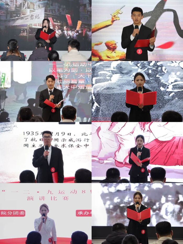 此次比赛共八位选手参赛,他们围绕主题展开了慷慨激昂的演讲,个个精神饱满,声情并茂,用富有感染力的语言、鲜活生动的事例,从不同角度阐述了对“一二·九”运动精神的深刻理解以及当代青年在新时代背景下应当肩负的使命,精彩的表现赢得了台下同学们阵阵热烈的掌声,也引发了大家的深深共鸣。