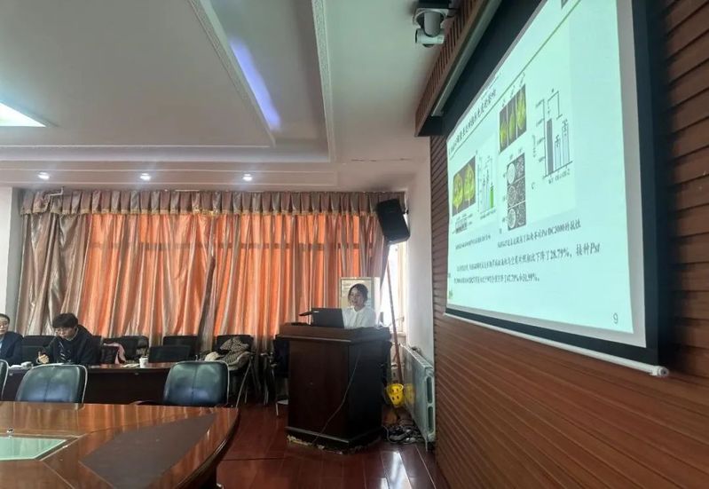 四名博士分别对博士期间的研究内容进行汇报交流,其中孙伟娜博士以《小豆利钠肽蛋白VaEG45参与小豆抗锈病的作用机制》为题,介绍了小豆利钠肽VaEG45在植物免疫中的功能和作用机制,发现VaEG45除具有抑菌活性和酶活性外,还可通过增加病程相关蛋白的表达和过氧化氢含量提高植物免疫,此外,通过酵母双杂交和萤火虫荧光素酶互补证实了VaEG45可以和VaMSRB5互作调控植物免疫,研究为小豆抗锈基因挖掘和抗病基因辅助分子育种奠定基础。