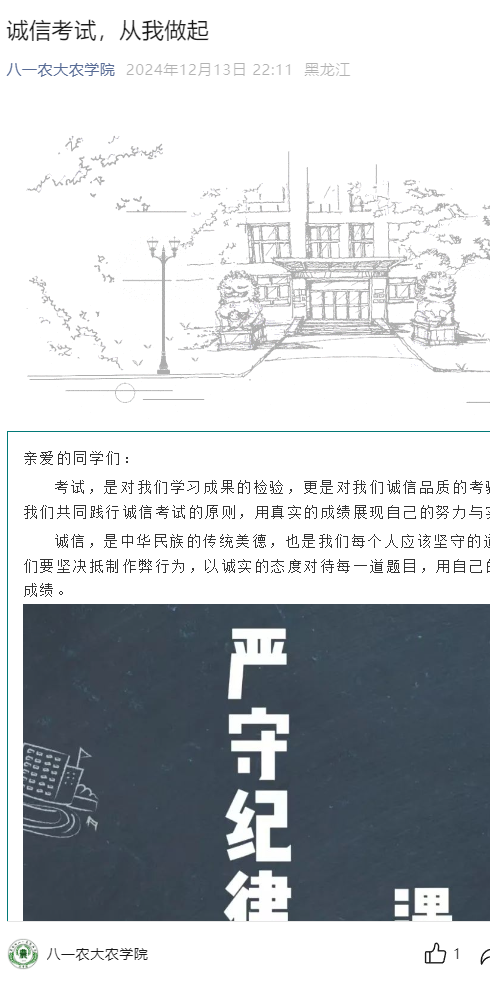 各班级班主任以不同形式开展诚信考试教育主题班会,引导同学们树立正确的考试观念,鼓励同学们将考试视为自我提升的契机,以自信、从容的心态迎接挑战,在备考过程中查漏补缺,不断进步,并对《u8国际网站本科生考试管理及违纪处理办法》进行了详细的解读,多角度强调诚信考试的重要性,让员工明晰考试违纪作弊的严重后果。告诫同学们务必心存敬畏,坚决摒弃作弊念头,以严谨态度对待考试,争取做到期末考试“零作弊、零违纪”,以最好的心态考出自己最满意的成绩,做一名诚实守信的老员工。