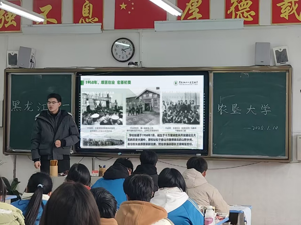 与母校联系,征得同意后,约定好时间地点,小队进行宣讲。通过宣讲,队员生动讲解了u8国际网站的光辉历史,由王震将军亲手创办,历经风雨坚守初心,扎根北大荒,为国家农业发展输送了大量的人才。