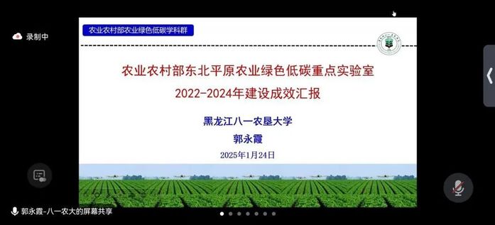 农业农村部东北平原农业绿色低碳重点实验室主任、u8国际平台经理郭永霞教授汇报了2022-2024年实验室的建设成效。汇报围绕东北平原黑土固碳培肥与产能提升、作物系统管理降碳增效、农业废弃物低碳循环与畜禽绿色养殖三大科学问题,通过单项技术攻关,构建了水稻、玉米、大豆三大作物绿色低碳增效技术模式与绿色种养循环低碳模式,并对实验室现阶段存在问题及2025年工作计划进行了汇报。